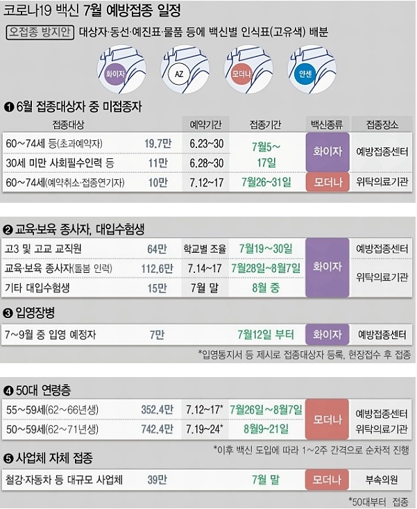 <50대 7월 코로나19 백신 접종 계획>