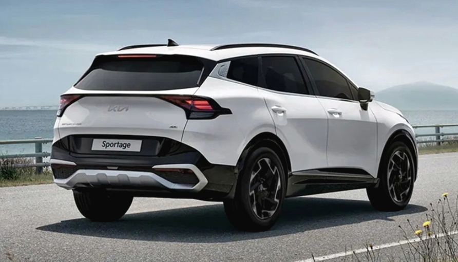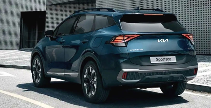 뒤에서 보면 스포티한 모습은 여전하고 와이드한 숄더에 왼쪽과 오른쪽으로 연결이 된 수평형 가니쉬와 날렵해보이는 리어램프를 통하여 단순하면서도 안정적인 모습을 보여줍니다. 넓은 면적의 검정색 리어 범퍼에 유니크한 스키드 플레이트를 적용하여 앞면과 함께 통일감있는 디자인을 보여주는 것이 이번 2022 기아 스포티지의 외형 디자인 특징입니다.
