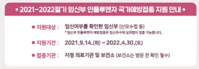 2021년 9월 14일 화요일부터 2022년 4월 30일 토요일까지 입니다. 임신부의 경우에는 본인이 임산부임을 증명할 수 있는 서류를 제시하면 됩니다.