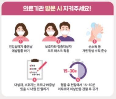 * 코로나 유행상황에서 안전한 접종을 위해 접종일정을 준수하고 사전예약을 통한 접종을 해야만 합니다.