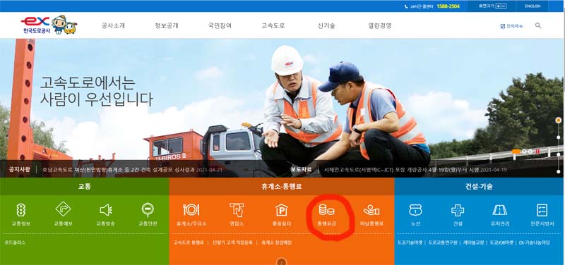 통행료 요금을 확인하고 싶을때 이용하면 좋은 홈페이지가 한국도로공사 입니다. 검색사이트에서 검새갛여 해당 홈페이지로 접속합니다.