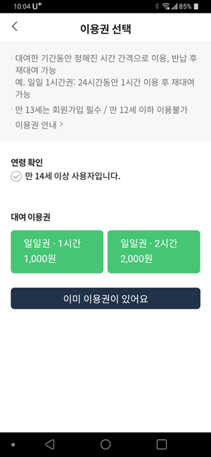 로그인 화면은 간결한 이미지 중심으로 탈바꿈되었습니다. 사전 결제 수단 등록 기능도 적용되어 신용카드나 모바일 페이를 등록한 뒤로는 이용권 구매 시간을 줄일 수 있습니다. 이용권의 남은 시간, 정기권 만료일 등도 쉽게 확인할 수 있습니다.